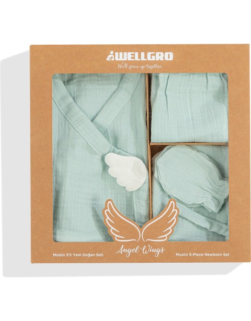 Σετ Νεογέννητου 5 τεμαχίων-Μέντα με Φτερά Αγγέλου
