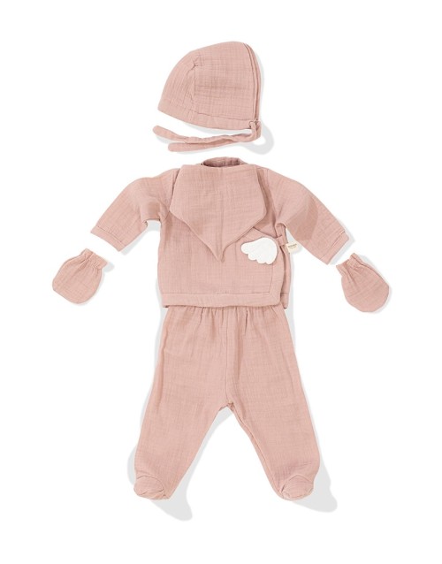 Σετ Νεογέννητου 5 τεμαχίων-ροζ με Φτερά Αγγέλου