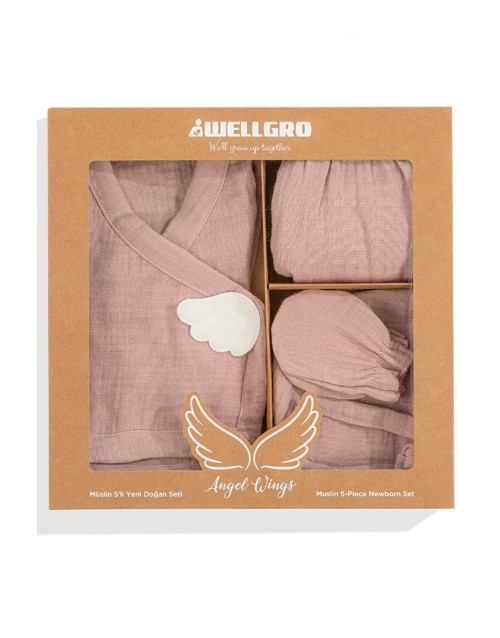 Angel Wings 5-τεμαχίων Νεογέννητο Σετ-ροζ