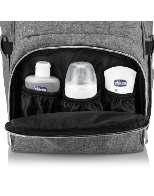 Η τσάντα φροντίδας μητέρας και μωρού μας έχει 4 ελαστικές θήκες και 2 θήκες με φερμουάρ στο εσωτερικό.Υπάρχουν 3 θήκες με θερμικά χαρακτηριστικά (κρύο και ζεστό έως 2-4 ώρες) στο μπροστινό μέρος της τσάντας