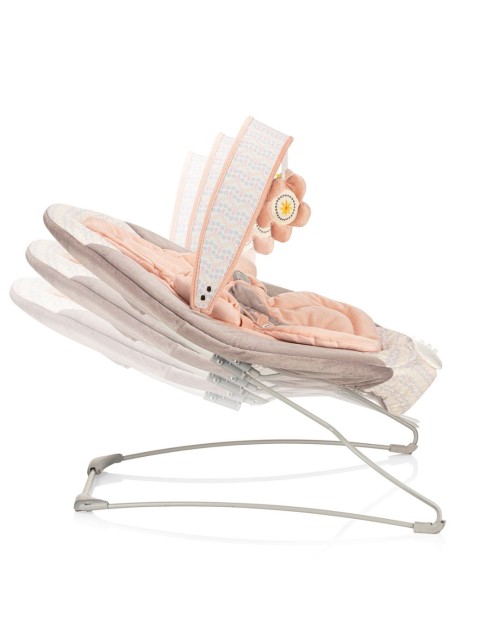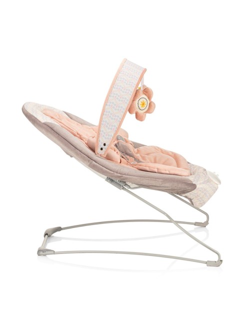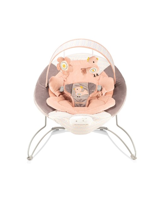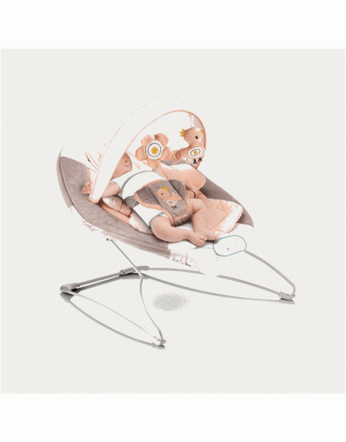 Με το κουνιστό σχήμα του, συνοδεύει τις φυσικές κινήσεις του μωρού σας.  Διαθέτει ζώνη ασφαλείας τριών σημείων για την ασφάλεια του μωρού.  Κινητό με 2 μαλακά παιχνίδια